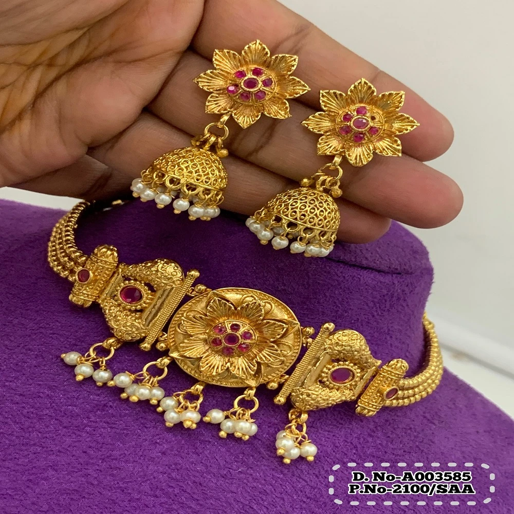 ইন্ডিয়ান জয়পুরি গোল্ড প্লেটেড চিক সেট।
