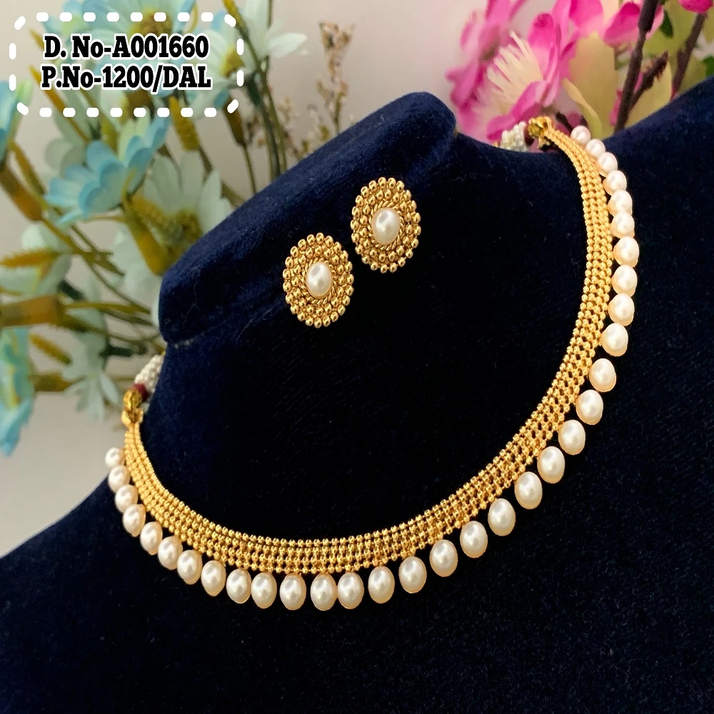 ইন্ডিয়ান জয়পুরি গোল্ড প্লেটেড নেকলেস পার্ল সেট।