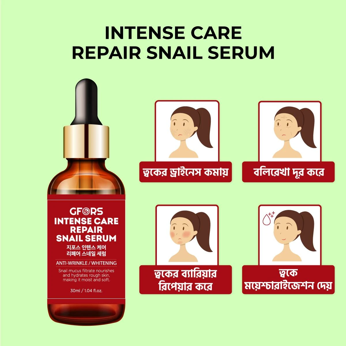Snail Mucin, Asiaticoside, Hydrogenated lecithin, Lactobaccilus Ferment Lysate, Panthenol and Adenosine