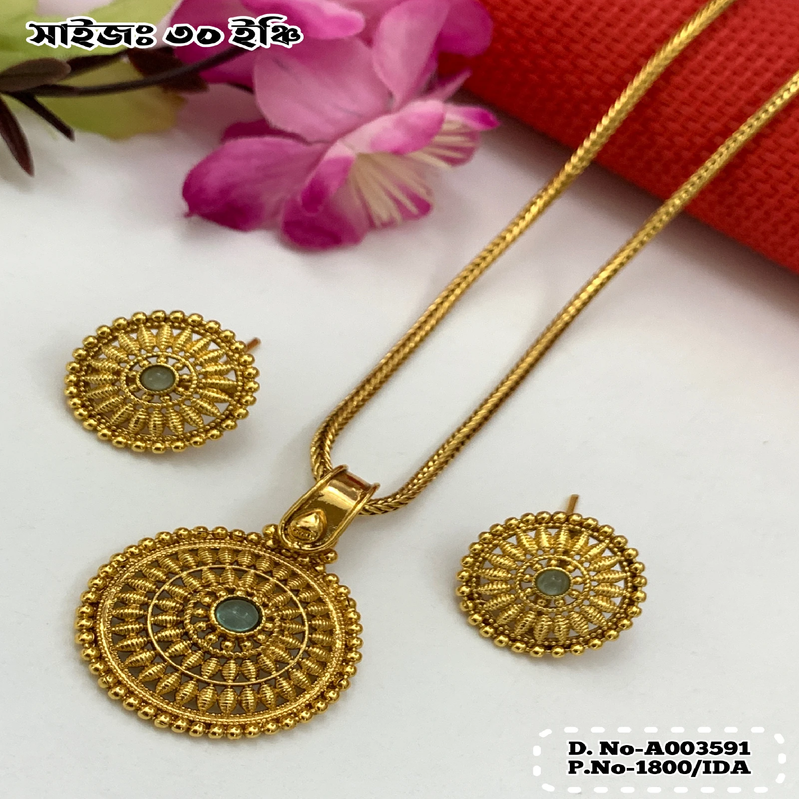 ইন্ডিয়ান জয়পুরি গোল্ড প্লেটেড পেন্ডেন্ট সেট