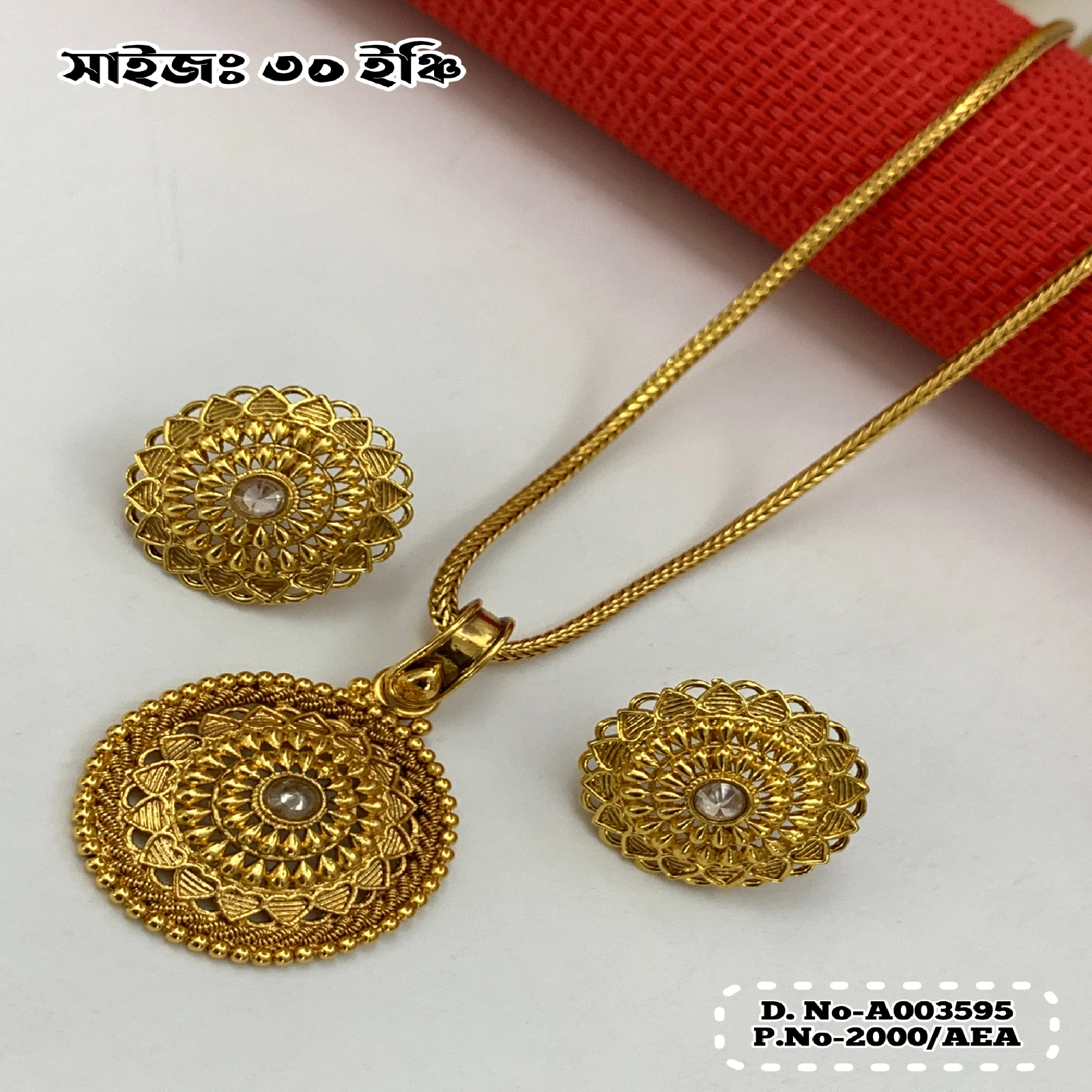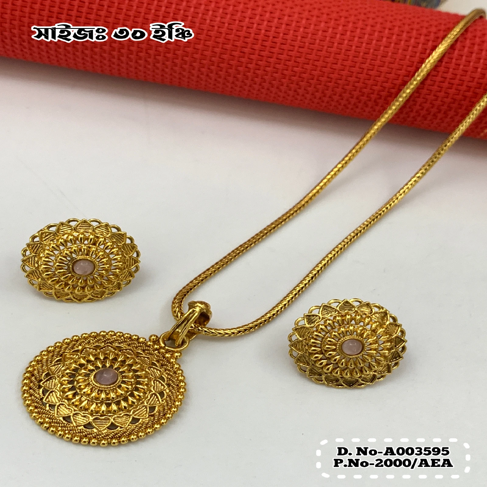 ইন্ডিয়ান জয়পুরি গোল্ড প্লেটেড পেন্ডেন্ট সেট।